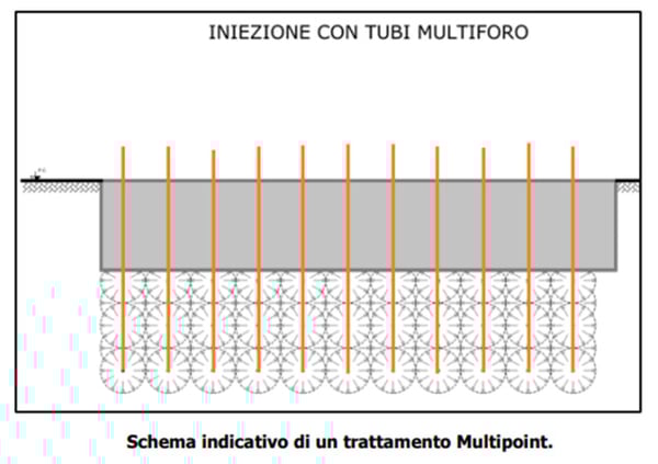 - The injections were carried out with the Multipoint injection system, involving the volume of soil from 0.00 to - 4.30 m above soil;